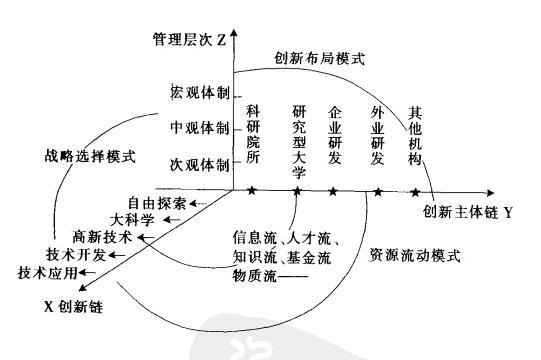 5、管理Z與創新主體Y之間,表現出管理對創新主體的政策性安排,稱為創新體系布局模式;